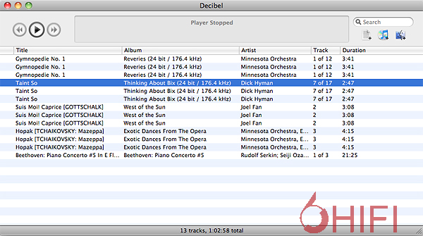 iTunes现在还不能播放高解析度FLAC,所以我另外安装了Decibel播放软体,操作介面很简单,佔用细统资源也很小,但音乐管理功能不佳,不过Decibel播放出来的声音品质可是一级棒,推荐Mac用家下载安装。