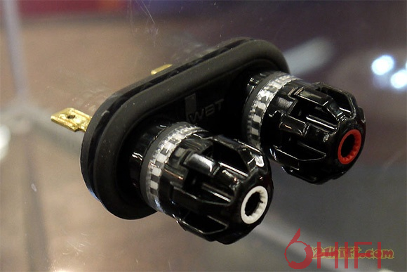 喇叭端子采用新的构造为中空式设计,可以有效抑制模拟音频下的高频波段的恶化。端子与信号通道采用纯铜,所有金属零件表面以镀金进行防氧化处理,接线端子的基部采用超耐高温的合成物料和矿物质加强塑料,能实现优越的绝缘性和强度,为喇叭端子与安装面提供坚实紧密的基础。