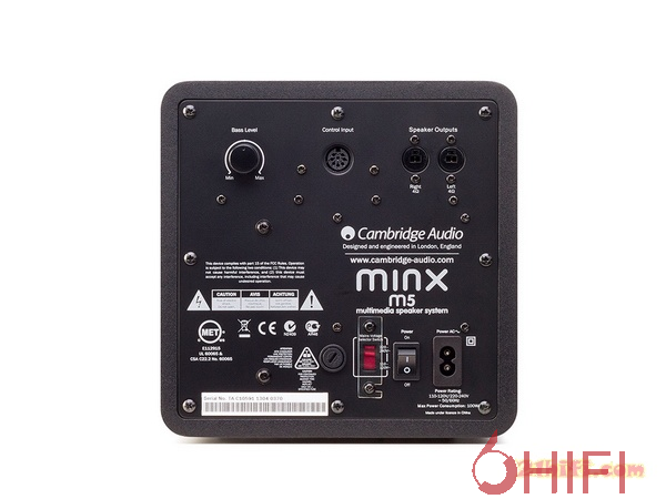 Minx M5卫星音箱系统的小巧箱体外部采用高级的钢琴漆工艺,除了传统的模拟音频输入外,还具有USB接口,可以通过USB连接电脑直接解码,同时也支持智能手机、平板电脑、甚至是您的电视机(3.5mm插孔)之间切换。USB接入状态下,能通过Minx M5集成的高品质DAC解码组件,能作为电脑、数码设备的外置声卡使用,确保高品质的声音再现。Minx M5的音量控制和电源控制等操作都集中在精致的控制盒上,盒子除了音响输入接口外,还提供有耳机放大输出,能为用家提供完整方便的桌面音频解决方案。