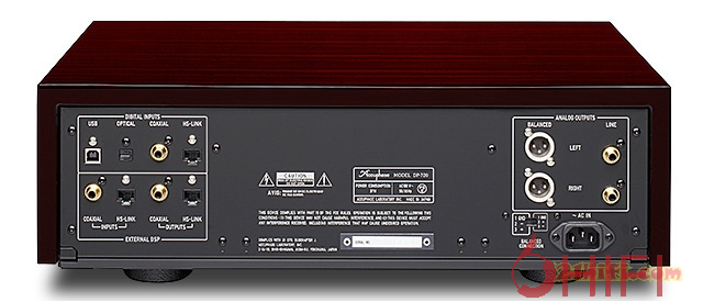 ACCUPHASE DP-720支持SACD 2ch、 CD的播放,模拟输出提供RCA及XRL平衡接口,数码输出除了CD专用的同轴端子以外,DSD信号支持以HS-LINK输出,同时也支持HS-LINK输入。HS-Link接口是金嗓子自己开发的High Speed Link数码讯号传输系统,其速度可达400Mb/s,方便之处是只需用一条HS-Link信号线,就可以接收及送出数码信号,用以保证时基同步,且损失极小。此外,HS-Link系统其最大的好处是能够快速传输资料达至400MBps,亦可达至准确无误的传送,尤胜光纤及同轴接线。ACCUPHASE DP-720的机身尺寸W477×H156×D394mm、重量28kg。