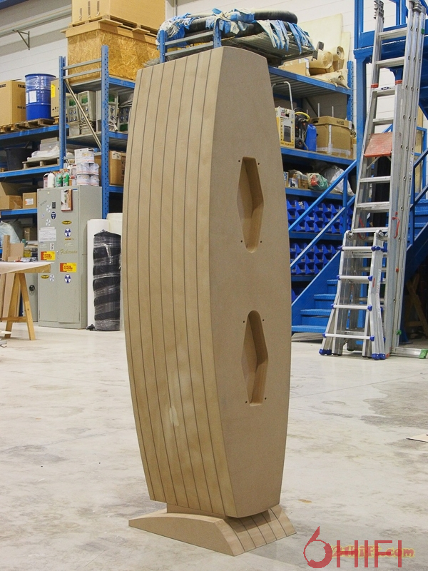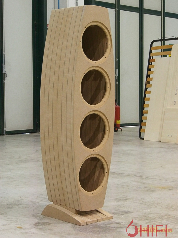 GALILEO采用巧妙的对称弧面箱体设计,高/中音模块安装于加厚实芯前障板上,而低音单元则安装在背面,充分利用箱体的空间特性之余,也能将低音腔体与高/中音模块独立物理隔离,减少低音共鸣对高/中音的影响。EMMESpeakers GALILEO的灵敏度为86分贝、承受功率300瓦、标称阻抗6欧姆、频率响应20Hz-20kHz,尺寸(HxWxD): 1490毫米x 386毫米x 452毫米、净重(单位): 80公斤。由于EMMESpeakers新旗舰音箱GALILEO现在还是校声阶段,所以现在只有少量图片,具体详细介绍,请留意21hifi稍后的报道。预计GALILEO将于年中的慕尼黑音响展才正式亮相,定位于顶级市场。