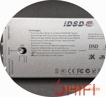 同时micro iDSD装载有独有的专利“3D全息”、“X-BASS”和“零抖动”、“直接驱动”等技术,除了RCA模拟音频输出外,还具有6.3mm标准耳机端子输出、输出功率为400mW。机内装载一组高端的音频级音量控制单元,可以作为数字前级使用。