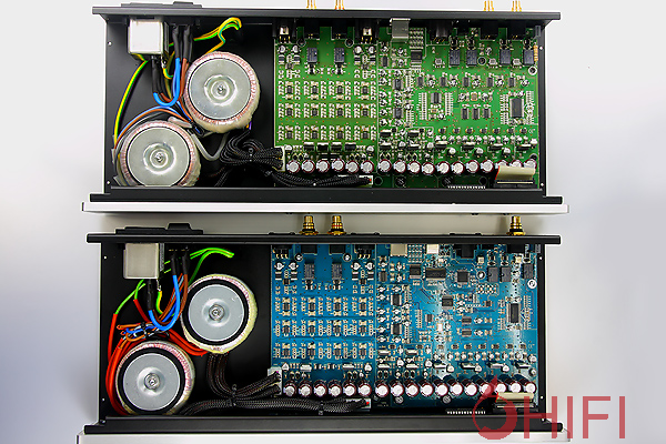 从32bit的规格,很容易理解USB DAC32比起前一代的解析度提升许多,而且USB DAC32在数位解码就採双单声道平衡设定,可有效提升声道分离度,类比端则採差动放大,著眼于讯噪比的提升。关键的电源供应和前一代差不多,一样配备了两组环形变压器,把类比和数位的电源供应分开。其实USB DAC32和前一代Model 2192 MK II两者问世的时间仅相隔三年,数位线路与类比线路的变化并不大,读者可以参考Model 192 MK II的评论。