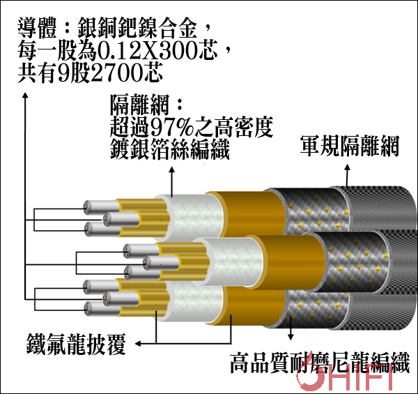 关于十五週年纪念讯号线所使用的材料,故事得要讲到一年前,我到桃园找小邓,他拿出一条电源线和一组平衡线,请我带回家听听看,原来这就是十五週年纪念的试作品,我听了一个星期,打电话给小邓说:「这两条线很厉害,音乐表情很自然,全频段都很均衡,但设计取向和过去Power Source很不一样,我猜这线真要做出来一定不便宜,这麽细的线身会有市场吗?」小邓回答:「这是很难得找到的材料,导体是由银、铜、钯再加上某些稀有金属元素构成的特殊合金,结构一样是多芯绞绕,然后加上铁弗龙披覆,线身虽然很细,但结构非常强固。」电话中多聊了一会儿,我才知道这十五週年系列使用的线材,本来是用在飞机上面的材料,因此线身结构非常非常坚固,同时对温度的耐受度很高,零下80度到150度之间都可以正常工作,而且经久不变质。小邓说他试用了一些样品,效果很好,就把代理商手上的货都买下来,但数量还是很少,他也很难说可以做出多少组(有些客户会订做特殊的长度,尤其是平衡线可能会买很长),所以他也没说十五週年系列每一款各限量多少,只能讲数量有限。