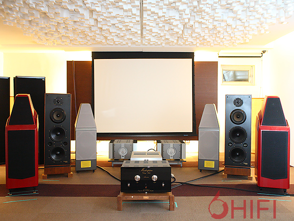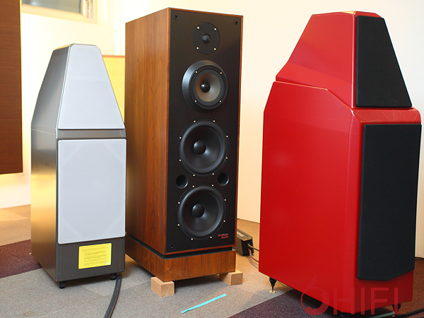 试听之前先试了一下喇叭,包括Westlake BBSM-10VNF与Wilson Audio WP Sasha,最后选择WP Sasha,就是图中右侧的红色喇叭。