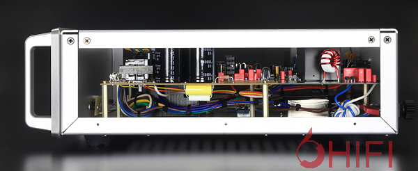 可是经过了6年,2009年开始登场的DSi 200、2010年问世的DS450与DS225,採用的却是不折不扣的D类放大,看来ARC有了新的设计方向。DS系列全名是Definition Series,放大元件主要使用美国IR设计的IR 2092,将类比讯号转换为PWM讯号,驱动MOSFET功率晶体。DS系列可说是ARC自行研发的成果,回归ARC偏好的全平衡设计,线路本身也标榜无整体负回授。虽然我们可以简单地说DS系列就是一部D类扩大机,但是DS225确实有多地方比起普通的D类后级来得高明。譬如DS225内部硕大的EI变压器,ARC强调其电源供应依然是强调超额供应,追求最线性的输出。输出级自然是高速PWM切换式设计(不然怎麽叫D类),切换频率为400kHz,输出效率高达93%,因此DS系列也获得了美国能源之星认证。