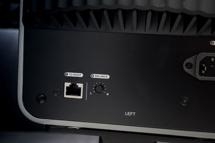 除了电源连接之外,左喇叭的 LAN 端子用作连接右边的主喇叭,设有左右声道平衡旋钮,正常情况下置中就 OK。