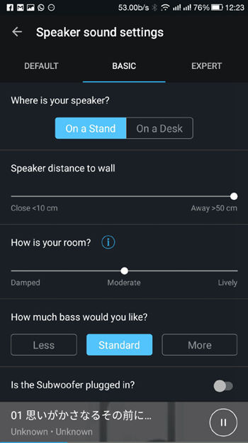 每对连接好的喇叭可以在 App 上显示并独立进行设定,Basic 设定内提供了基本 EQ 设置,而且只是让用家输入摆位情况,相当易用。