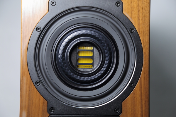 FS507 VX-JET(后文简称FS507)的设计不同于下级系列的老弟们,即便都是使用JET气动式高音,但其他系列喇叭都是独立高音,FS507却是使用高音/中音同轴单体。谁也用上同轴单体?这两年在音响展里曝光率很高的Concentro正是。只不过,Concentro的同轴单体跟500系列又不一样,那是专门为Concentro量身打造的X-JET同轴单体。我们若这样看,Elac只在高阶喇叭上才用上同轴中高音,而FS507是Elac旗下配备同轴单体最可亲的一款。