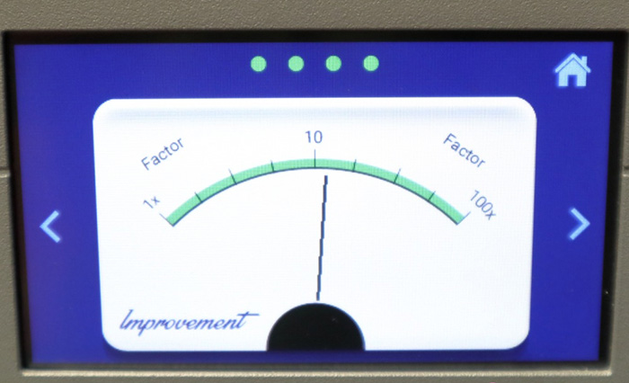 面板萤幕显示的表头有四种型态,分别是消耗功率、电源改善因数、输入失真率以及输出失真率。在我实际使用的过程中,消耗功率都没有超过一半,电源改善因数大约都是10x,而输入失真与输出失真的差异非常惊人,光是看这些数据就可以很明显的知道P12是真的有效。但是声音呢?当然还是要听过了才算数。