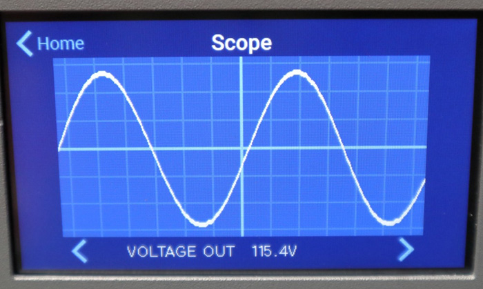 ▲这是选单下方第一个Scope示波器的选项,这里显示的输入波形,下方显示的则是输入电压,可以看到目前的电压是111.7V,电压是足够的,但问题是会上下微幅跳动。