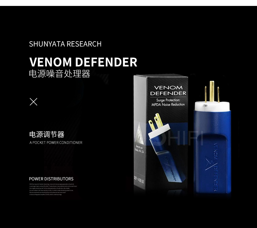 VENOM Defender模块由Shunyata Research创建,旨在为音响系统提供高性能的插件保护和先进的降噪技术。