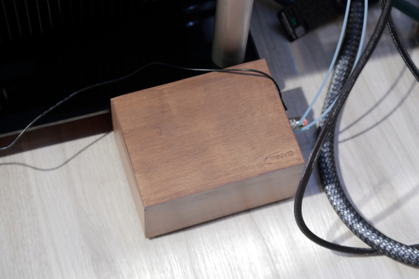 更厉害的是,除了产品经销,品乐也透过自营品牌Pinyo开发自己的产品,目前除了音响迷一定要用的音响架、音箱架等配件外,还开发了Pinyo接地盒,有大、小2款,大的万元不到,小的不用5仟,外壳采木盒,内部承装黑曜石,藉由矿物的方式达成电源接地的效果。另外还有最新开发的金属避震角锥、垫,都是吸引客户的利器。