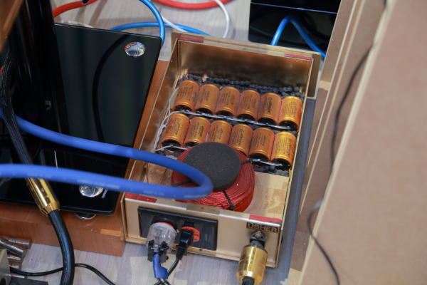 这是品乐自制的RC滤波器,用了不少补品电容。
