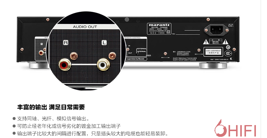 马兰士CD5005和PM5005是我最近所听的一套讯源和功放组合。CD5005可播放CD和SACD,PM5005则是标淮的小功率功放,33W(8Ω)输出功率,在13平方米的小型视听室里面驱动我的EPOS ES11小书架箱还是够用的。它们的上一代机型为CD5004和PM5004,设计上是大同小异,外观和功能跟上一代机型没什么区别。但当你打开机箱后细心地观察一下,你会发现机内的布局以及线路板上的某些零件会有所不同。尽管只是作了一些小改动,但对于发烧友来说,这些小改动往往就能得到更好的音质。而且两台机的模拟放大部分都采用分立件制作,虽然说IC也能出好声,或许这是因为跟我的年纪有关吧,我对分立件制作的放大线路总有一种独特的情结,总是觉得分立件制作的放大器出来的声音更纯、更自然。