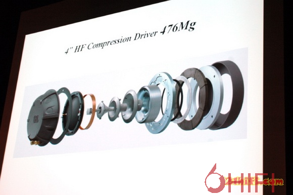 号角系统采用了单独成型的一体式技术,使用了树脂SonoGlass注模制成,SonoGlass是一种高刚性的树脂材料,原是当作隔音材料使用,强度相当的新金属材质。在超高音扬声器到中音城角开口部的圆弧处理上,由于是SonoGlass一体式注模,使号角的内径、角度的精度非常高,一致性更好。使号角系统具有充分的强度和良好的声学条件,取得清晰的声音。新设计的号角系统的水平与垂直扩散角非常宽,而且由于中音为“垂直”扩散号角的设计,这样的布置可使号角的高度与人耳齐平,产生精确的声场和定位,使无论在任何使用环境也能提供最理想的聆听效果。