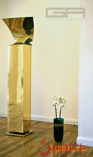 Gold Acoustics最近宣布推出一套奢侈的音响系统GA STAR,该套系统包括的扬声器部分由英国Lowther EX2全音域喇叭及GA EARTH超低音组成,内部接线全部是Van Den Hul Goldwater顶级线材...当然,最大卖点,箱体内部以花岗岩为基础,配合黄金工艺打造的精致黄铜镀24K金箱体外壳,整体外观可谓金碧辉煌!