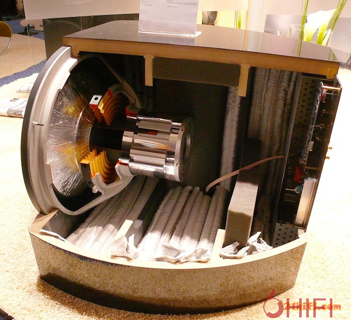 这项技术全部集成于曲线完美的箱体内,箱体材料与超高性能汽车所用的碳纤维和巴沙木复合材料相同。之所以采用这种材料是因它具有超轻和坚硬的特性。箱体的抛物线形状增加了箱体的强度,这意味着声音完全来自于驱动单元的运动,绝不受箱体的影响。