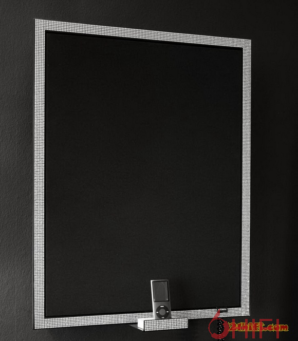 一向以研发前卫音响为主要目标的丹麦Artcoustic近日宣布即将发售一套Superstar系列壁挂式平面扬声器,面向高级市场。该系列最大卖点是在平面喇叭框上镶嵌满了Swarovski斯华洛斯奇水晶,同时可以配套一台无线传输的iPod基座,基座部分外壳同样镶嵌满水晶。
