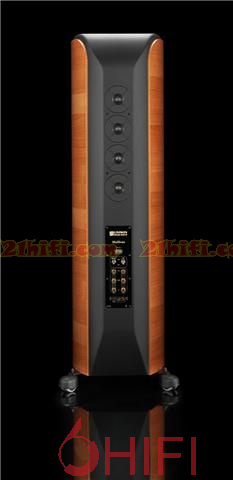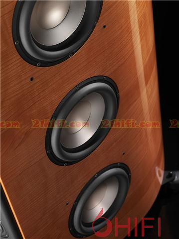 箱体内部采用多层MDF板夹合而成的厚度不同的板材制造,内部大量采用加强筋设计,能完全避免了箱体的共鸣影响。外侧板则为真樱桃木原木工艺、前面板、顶板、背板和则为一体式弧型骨架并配合包裹真皮皮革的工艺。由手工拋光研磨成形的樱桃原木,配合意大利皮革工匠的包裹工艺,整个外观规划虽然不复杂,却仍是隐隐透着一股精致典雅的气息,充分展现出意大利特有的人文风范。