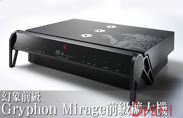 2006年在德国慕尼黑音响展中,Gryphon Mirage前级以概念产品的形式首度亮相,它由3个独立的分体组件组合而成,一组是顶部的放大电路部分,一组是下面独立箱体的电源,还有一组是放在前面的显示//操控部分,连电源都完全独立分离,这个显示/操控机箱可以远离机身随便放置,利用一个小天线传递操控指令,其目的是完全隔绝对放大电路的干扰。