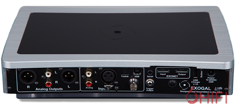 Exogal这款全新高级解码器提供有异步USB,AES / EBU,SPDIF,Toslink光纤和模拟线路输入,同时支持Bluetooth无线蓝牙接入,可以作为一台全能的解码、前级和耳放使用,装载的32位数字音量控制可实现对信号的高保真处理能力,采用全平衡的模拟放大输出,提供一对平衡(XLR),一对非平衡(RCA),一个立体声耳机输出,同时单端和平衡模拟输出可以同时使用,用家可以根据自己的需要,将RCA输出设为立体声或重低音,同时输出电平可预设调整。Exogal解码的机身采用阳极氧化铝壳体,重量:4.2千克、尺寸:47.6×190×292毫米。无需驱动程序支持苹果OS 10.6.4或更高版本、Windows XP SP3,Windows Vista的SP2或更高版本,Windows 7,Windows 8的系统使用。配合SR-71无线遥控器使用,可以通过iPhone、iPad、Android手机或平板电脑遥控播放音乐,让用家更方便地体验卓越的高保真音质回放。定位于高级市场。