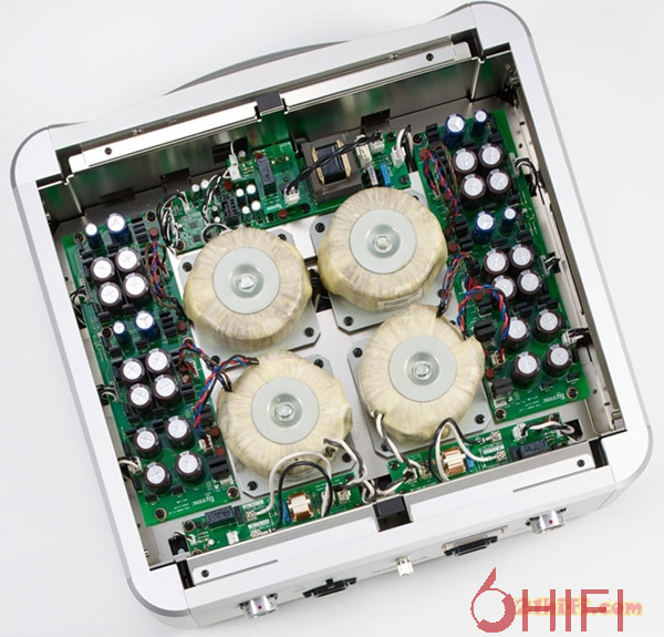ESOTERIC Grandioso C1采用分体电源设计,从电源开始就已经采用双单声道的设计,就是一台机内左右两个声道,从电源系统到输入、输出、放大电路等都是各自完全独立,以完全隔离左右声道之间的微弱信号干扰,同时左右声道的全部元件都会做精细配对后才安装,以实现更佳的一致性。