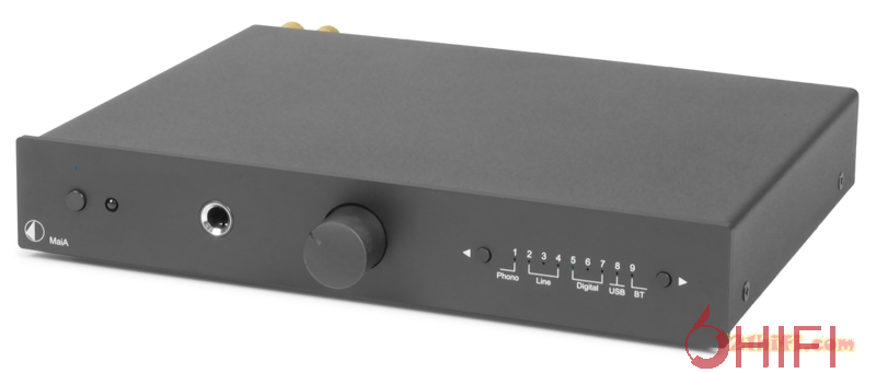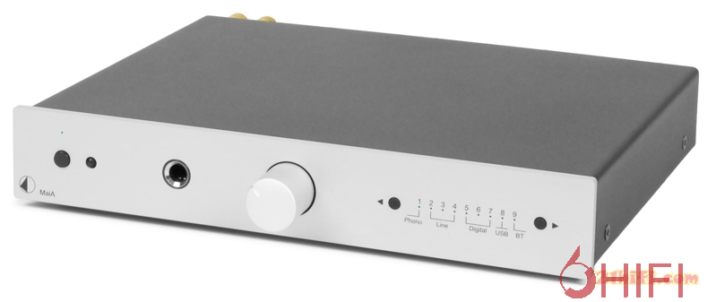Pro-Ject MaiA解码功放准过载有一组XMOS异步USB DAC,DA转换器是Cirrus Logic的CS4344,支持24/192的高清晰音频文件格式的解码播放,同时还具有同轴电缆光纤数字输入。同时内置蓝牙模块,支持aptX A2DP配对蓝牙接收,支持无线串流高品质的音频播放。同时为了满足黑胶LP用家,装载有一组MM唱头输入该唱头放大组件基于PRO-JECT广获好评的Phono Box系列的设计,双单声道线路架构,配备了发烧级放大模组和极精确的RIAA均衡曲线,提供高质量的MM唱头放大。同时还具有3个模拟线路输入,方便用家使用。