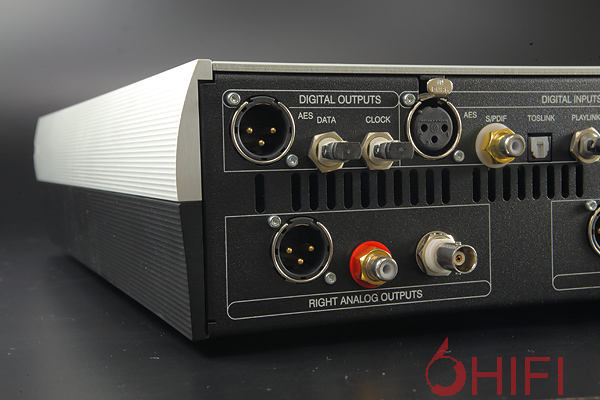 MPD-5的外观很简洁,银色与黑色双色调搭配,加上很细緻的金属加工,处处流露高级器材的气质。因为是DAC,使用很简单,所以几乎没有按键,数位输入与输出端子非常完整,传统的S/PDIF、AES/EBU、TOSLINK一应俱全,还有专属Playback Designs的PLAYLINK端子,再加上电脑音乐用家必备的USB端子,MPD-5可说是十项全能。MPD-5上面还有Clock端子,可与外接校正时钟搭配使用,我猜Playback Designs日后应该会推出另外的校正时钟,来和自家器材搭配。而PLAYLINK似乎也暗示著Playback Designs可能也会有转盘,这样这个专属数位传输介面才有用处,但目前PLAYLINK暂时还没器材可以搭配。