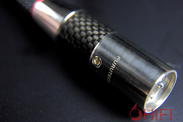 Flux Cable系列的特徵,就是採用了Furutech自家设计製作的碳纤维端子,最早推出的是电源公母插FI-50,还属于零件类产品,随后推出的Powerflux电源线,甫参展便获得2009年CES最佳创新奖。既然是得到「创新奖」,可见Flux Cable系列有其特殊之处。Furutech的确使用了许多传统上没看过的材料,先从平衡端子看起,金属部分打磨得很漂亮,那是高阶线材的基本功,而闪闪发亮不锈钢还经过消磁处理,消除对讯号的干扰,这是看不到的创新之一。其次就是平衡端子外围那一圈碳纤维材料,不仅好看,还增添了Lineflux的科技感。Furutech可不是使用一般的碳纤维材料,他们使用奈米技术製作的陶瓷微粒混合磨碎的碳粉末,再加入尼龙与玻璃纤维的聚合物,利用複合材料获得良好阻尼系数,降低机械与电器振动效应,外围加上甲醛共聚物(acetal copolymer)绝缘。像Furutech这麽用心设计与製作音响端子的厂商,花这麽大的心血把小小的接头做好,也难怪老美看了马上颁给最佳创新奖。