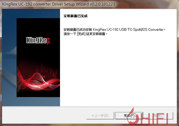 画面上可以看到驱动程式安装成功,不过我却是忙了好一段时间,因为我的Windows 7是64位元版,原厂光碟裡面的驱动程式不支援,于是重新找KingRex索取驱动程式,这才知道原来韧体也要更新,于是又换了一部UC192。原先买了UC192的朋友一定会想:那我可不可以更新韧体?没问题,打个电话给KingRex,他们很乐意为用家免费更新韧体